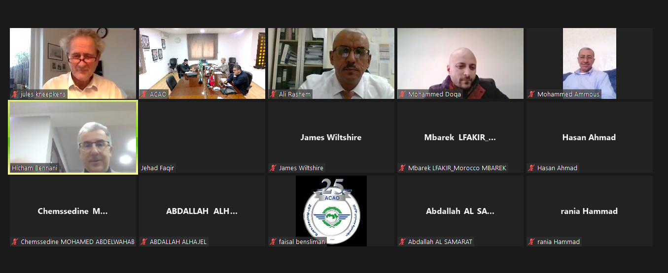 The ACAO 47th Safety Committee meeting ASC/47 has been conducted under Hybrid form, the 26 -28 November 2021 from 08:30 to 11:30. As first meeting after the ACAO GA, election of the and vis-Chairperson of the Safety Committee was made. The meeting convened to elect Mr. Ali Neemat Rasham representative of Iraq as chairperson, and Mr. Mohamad Ammous as vis-chairperson, while secretariat ensured by Mr. Hicham Bennani Safety Expert within the ACAO.